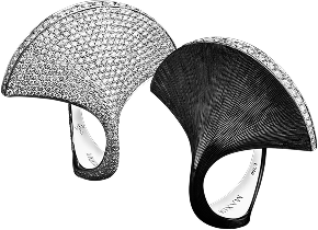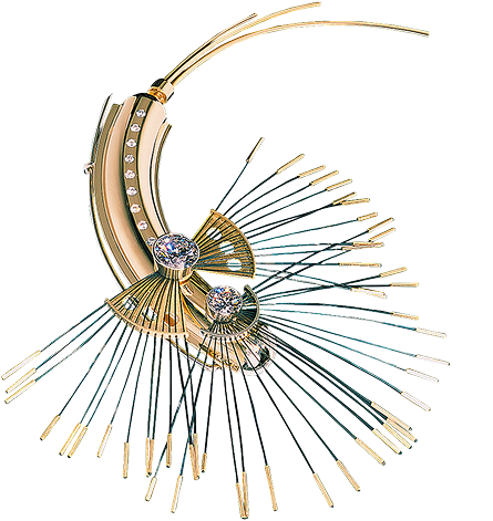 The idea of presenting jewellery in a theatrical way gave rise to the creation of the "heel" — a flat shape on the lower part of the ring allowing it to stand freely, like an "actor" on the stage. Awarded diploma for "constructive design".