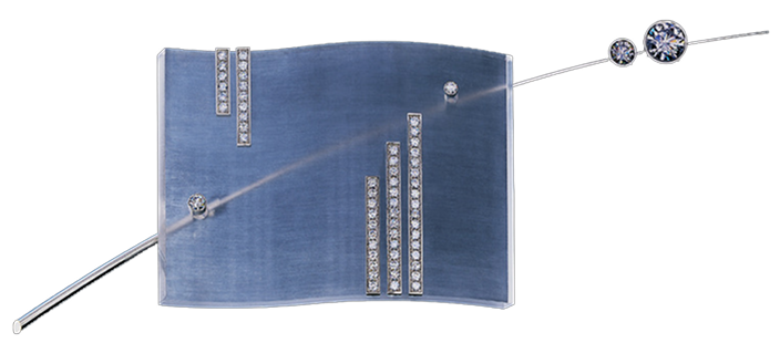 The idea of presenting jewellery in a theatrical way gave rise to the creation of the "heel" — a flat shape on the lower part of the ring allowing it to stand freely, like an "actor" on the stage. Awarded diploma for "constructive design".