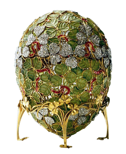 Maxim Voznesenskiy's creation of a pair of cufflinks and a pendant in the shape of a pearl egg, in honour of the memory of the great jeweller Faberge are gifted to the present King and Queen of Spain on their Wedding Day.